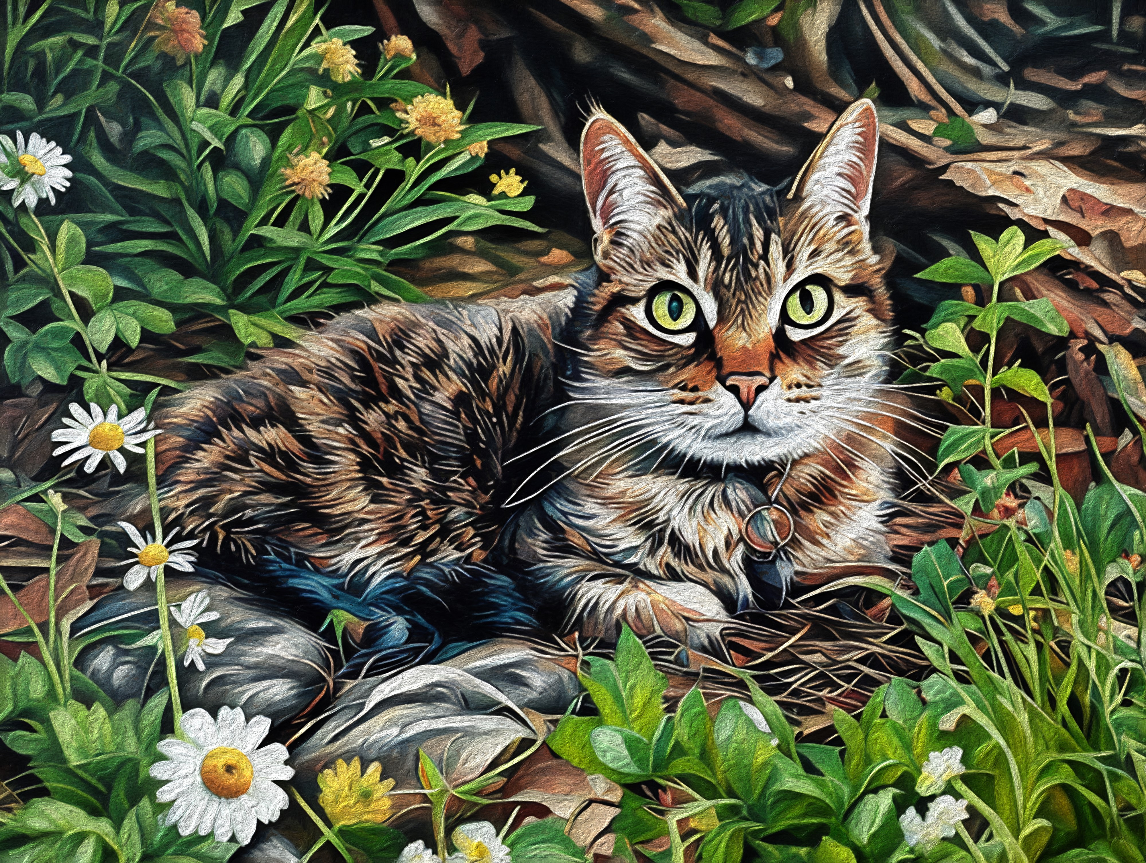 Put my cat in a pretty nature scene and turn it into a vintage painting to create a gallery like the example.