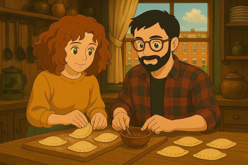 This requester created an image with AI, and was actually quite happy with it, other than a small spelling and logo error. The green storage crockery on the counter was supposed to say “Baltimore” and the shape above it should be an oriole bird. What they really wanted for their request, however, was to use the image to create a compilation with the recipe for the Empanadas that the couple in the image are making. They asked that it be something nice that could be framed