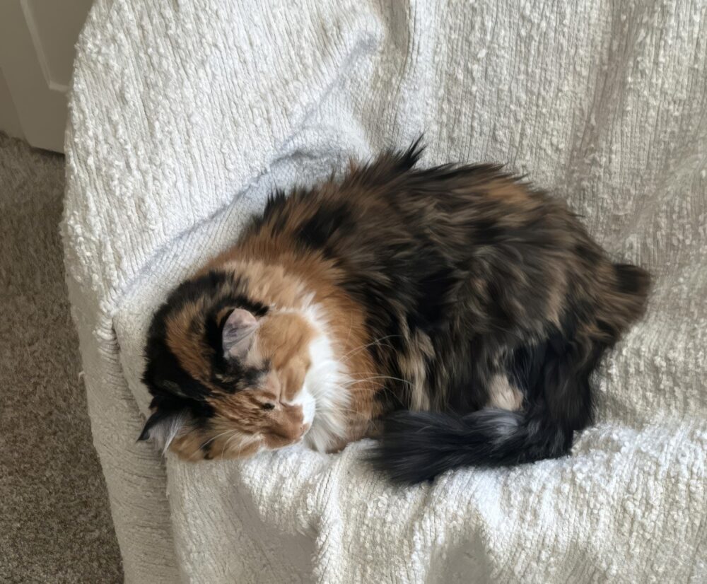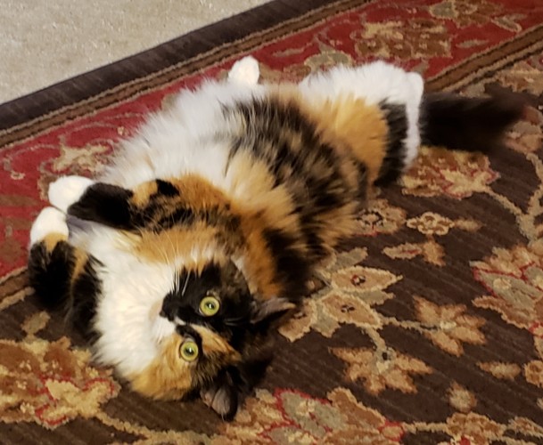 This was a fun little edit, and I was especially invested since I have a kitty that looks a lot like this one! My girl has a bisected face pattern, but a similar mottled, tortoisehell pattern across her body, and is pictured below in all her glorious cuteness! I have a weakness for tortis and calicos, and the ineveitable “tortitude” that comes along with them!