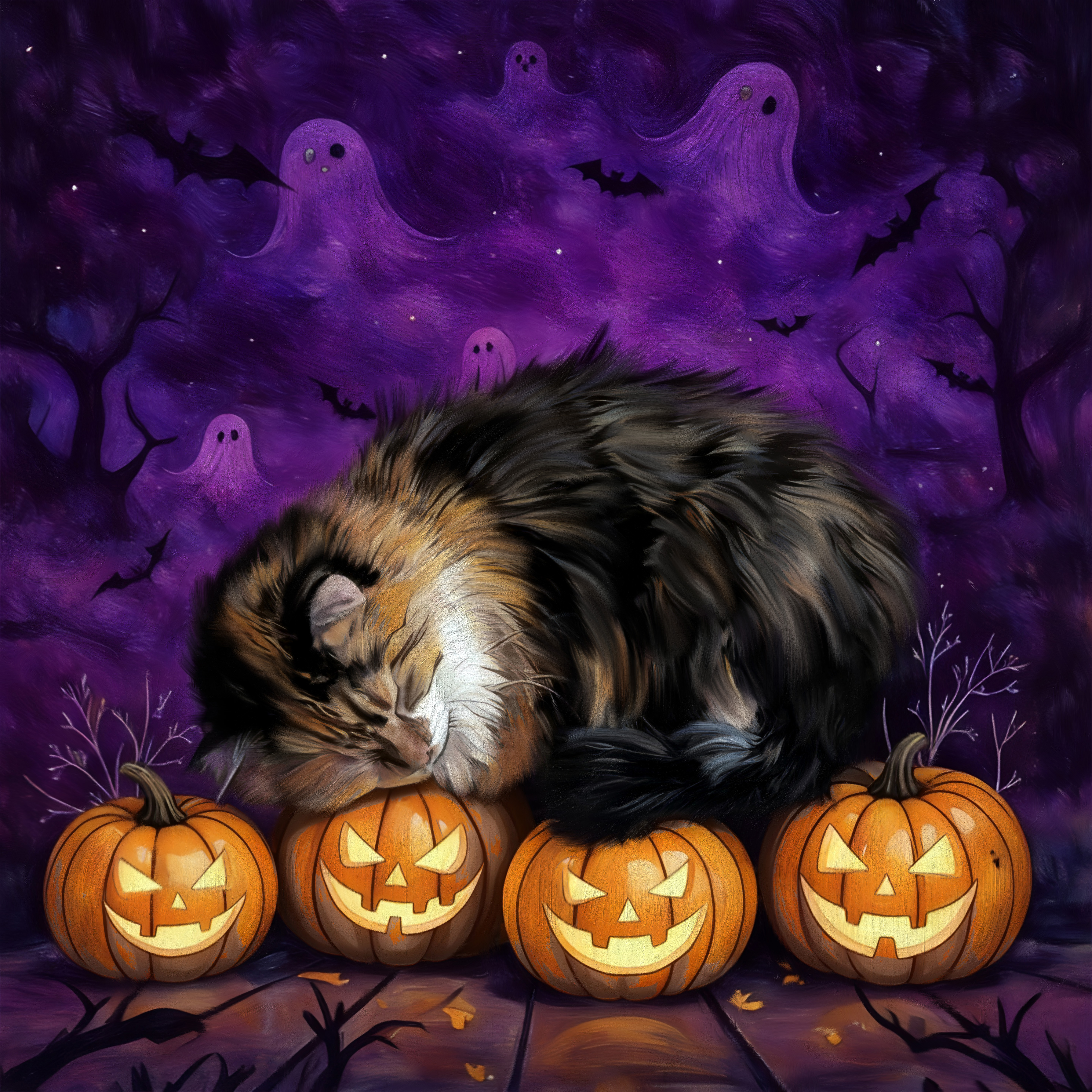 This request came from an OP who had posted another request, which I also completed. They wanted me to place the same cat into a Halloween themed painting.