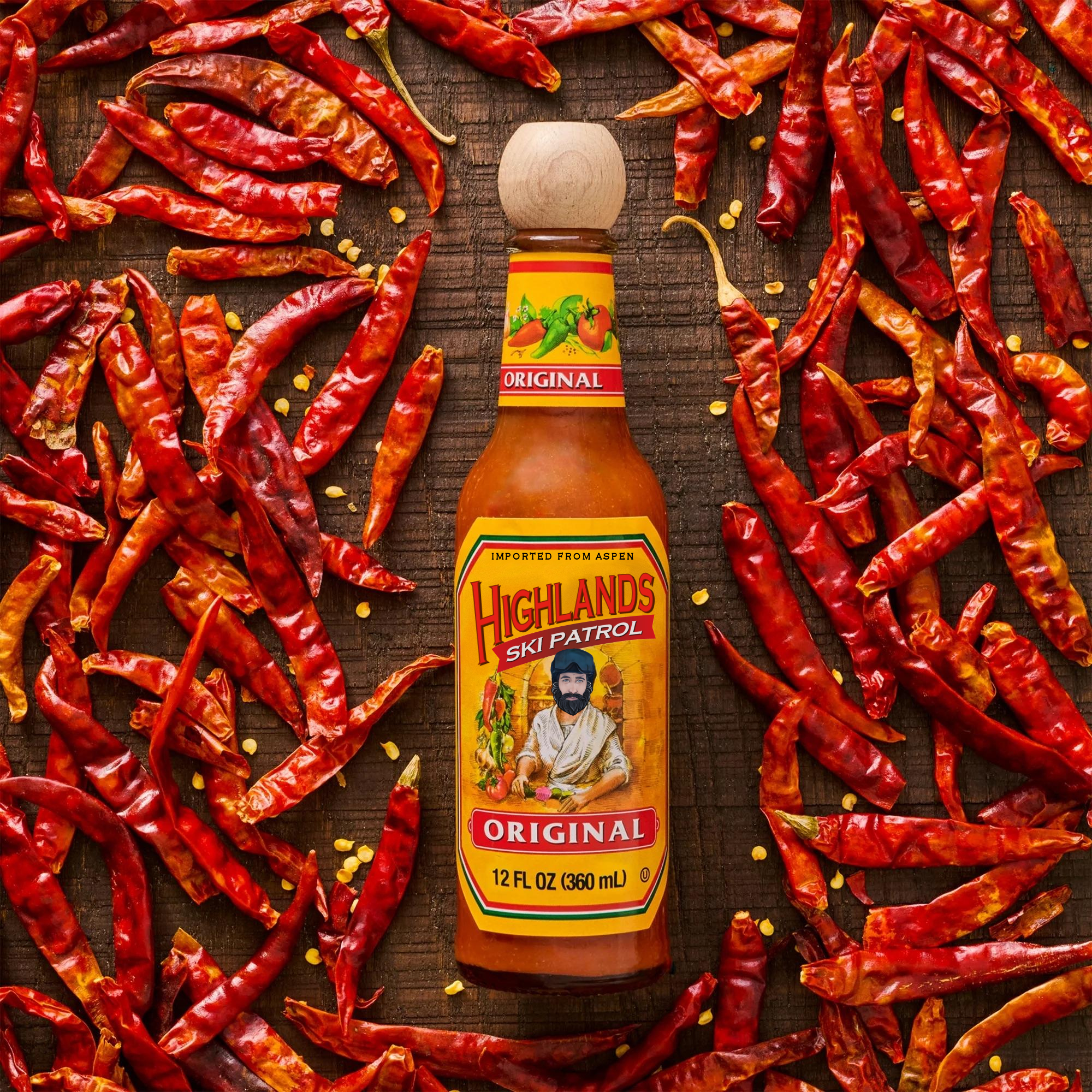 Hello, Trying to make a design for a sticker/end of season gift. Want to dub this cholula bottle. Looking to change: CHOLULA to HIGHLANDS HOT SAUCE to SKI PATROL IMPORTED FROM MEXICO to IMPORTED FROM ASPEN