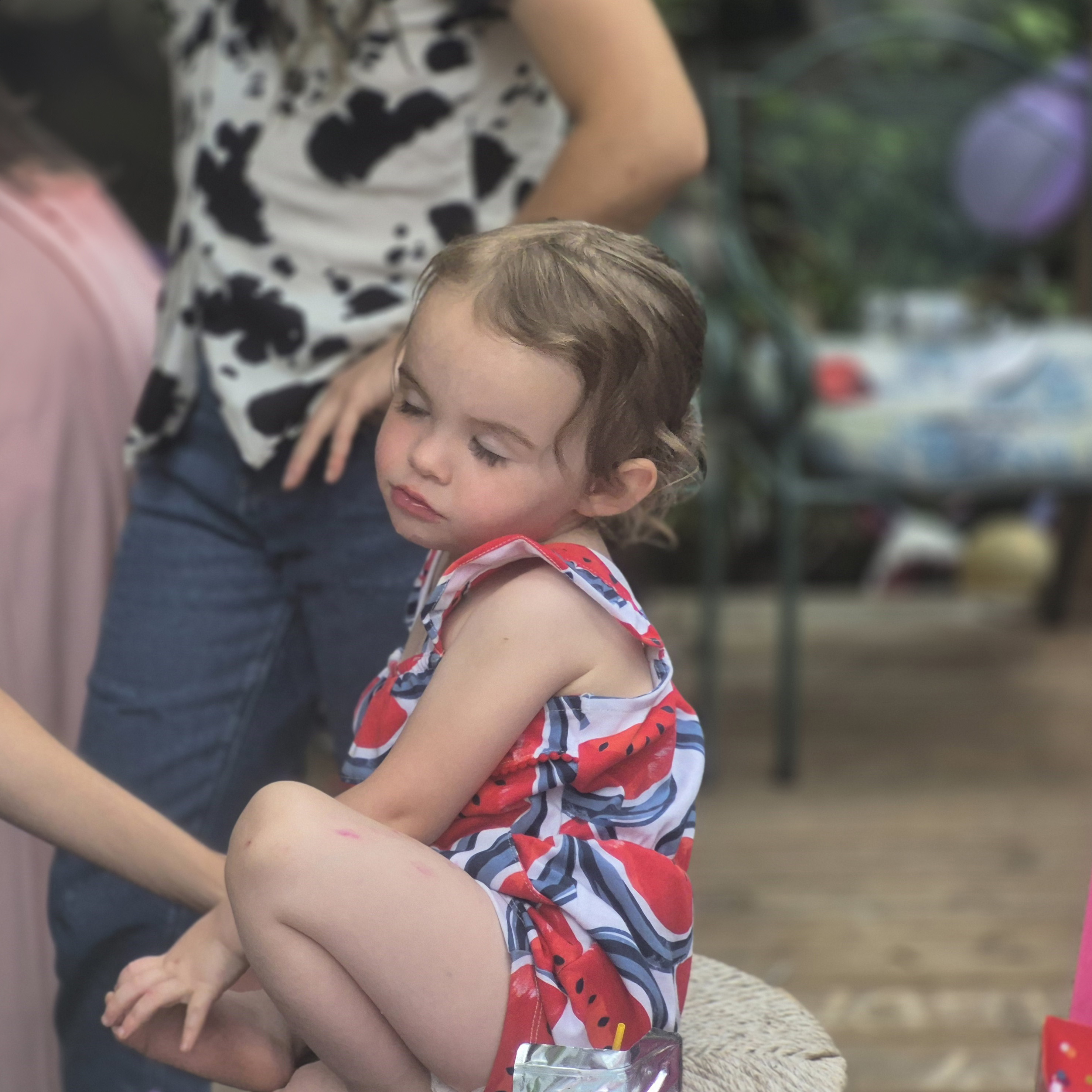 You may notice that I was still missing a foot for my niece, which had been cut off in the photo. I used Photoshop’s generative fill here to add in the missing part of the foot. I also did not like the fact that my niece’s hair was all sweaty and plastered to her head that day, so I generated some new hair for her as well that better matched the painting.