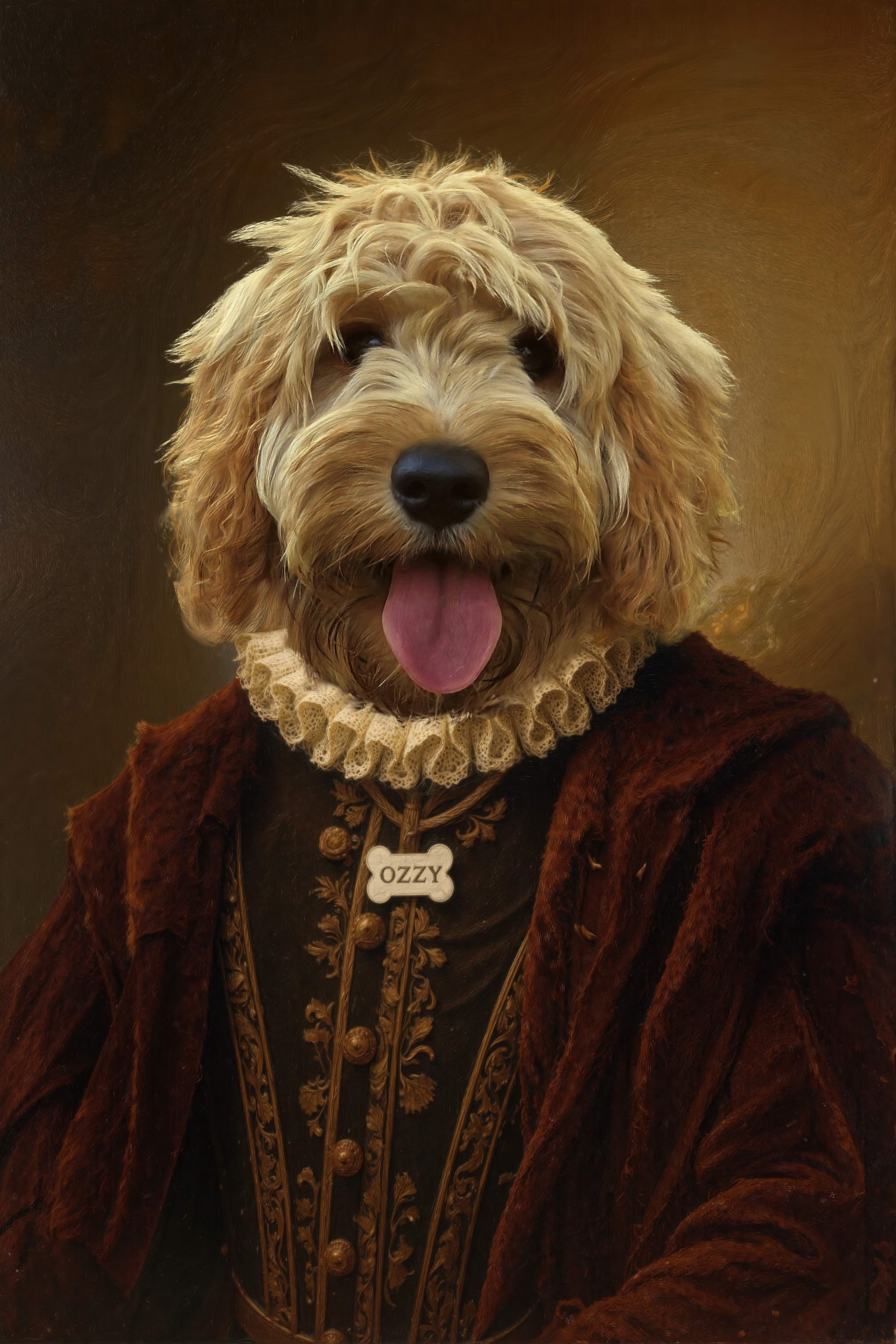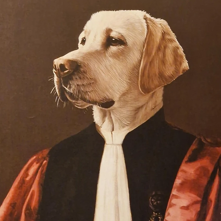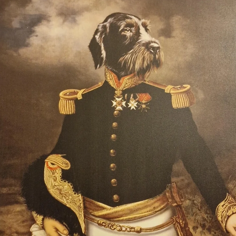 Hi everyone, i would like to have my dog on a painting like artpiece like the images attached. It doesn’t need to be the same stance/clothing as the attached images but i would like to have my dog dressed in the same kind of clothing.