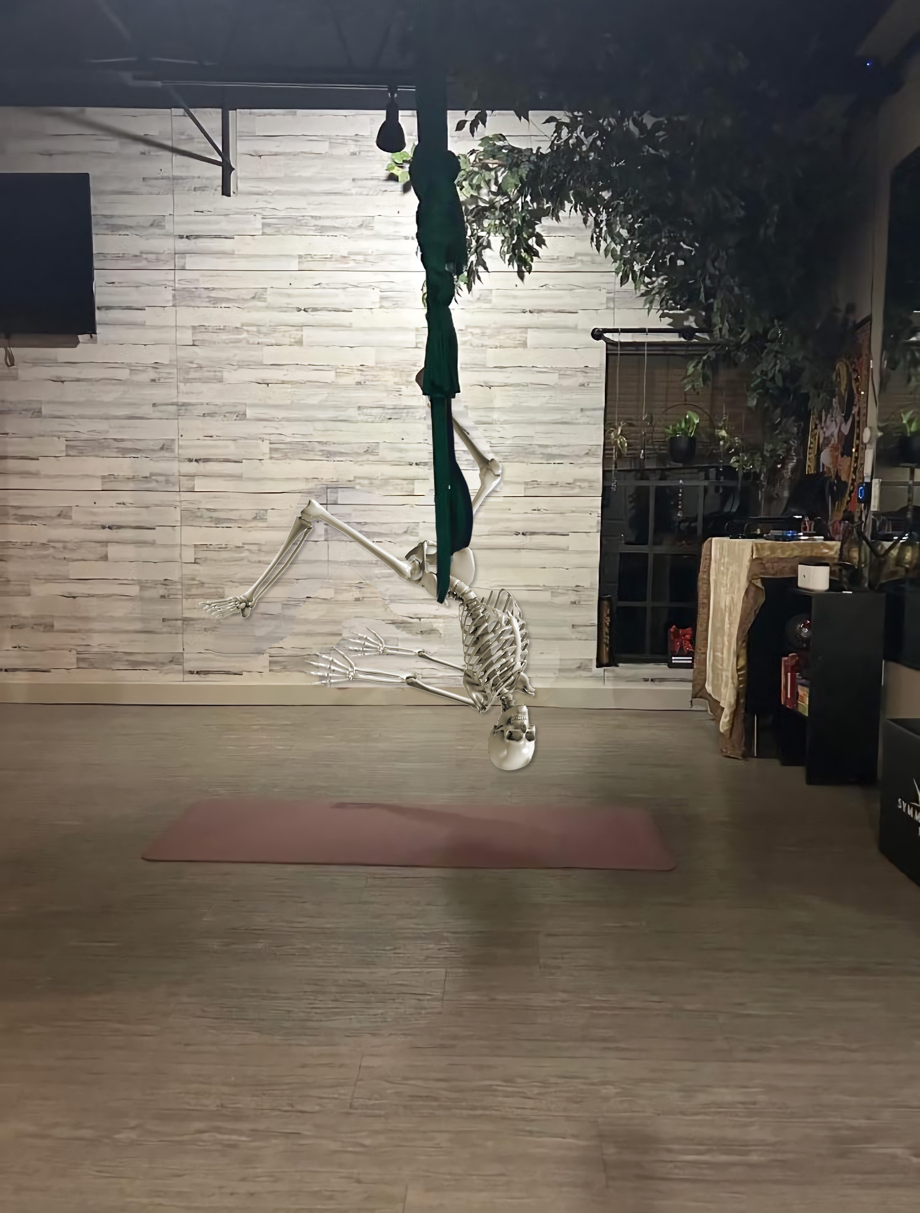 Was making a joke with my friend about getting stuck like that and not being able to get down – could someone match her pose but with a SFW skeleton? (Like not scary/gory). Thank you to anyone who can pull it off!