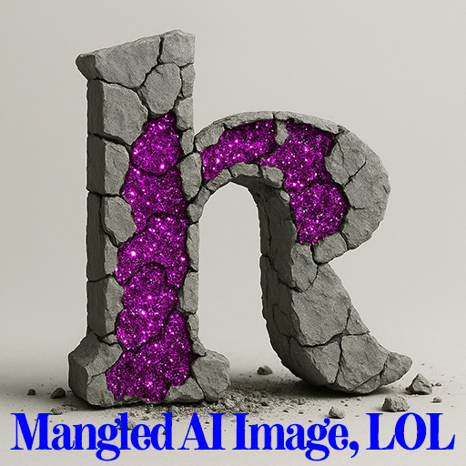 AI was not really able to understand the concept of the “R” within the “B”, but it did manage to get the general visual concept I was going for. I wanted a dull gray granite or concrete letter to represent how I imagine the young woman felt living her life in the wrong body. I wanted the granite to be crumbling, revealing pink, glittery crystal beneath like the hidden treasure within a geode to represent the beauty revealed when she finally realized her true self. Eventually I was able to get some (mangled) images that had the textures I was looking for, even if the execution was a bit off (see example thumbnail below). I was able to piece them all together in photoshop to form a single image that realized the vision I had in my head.