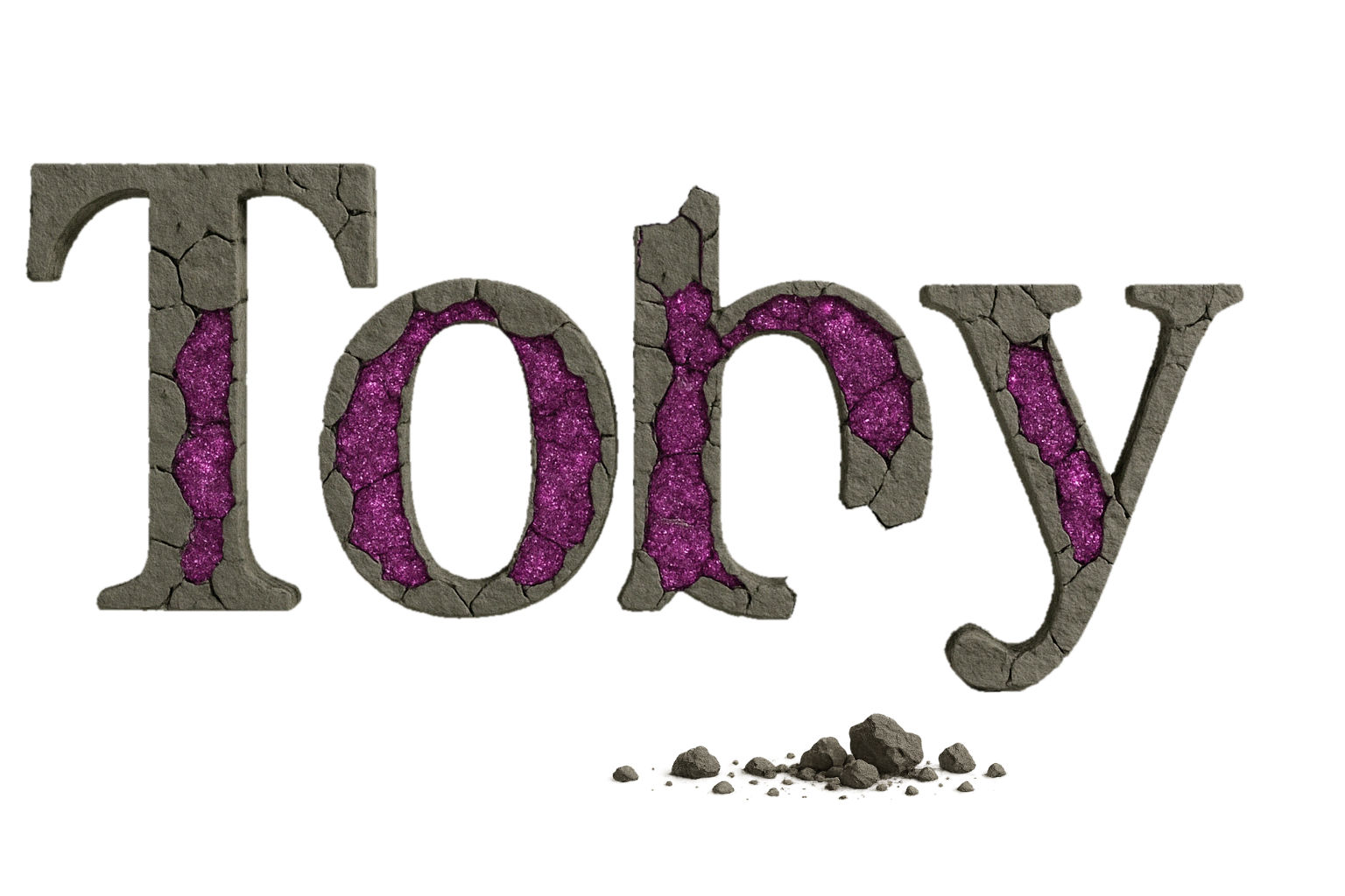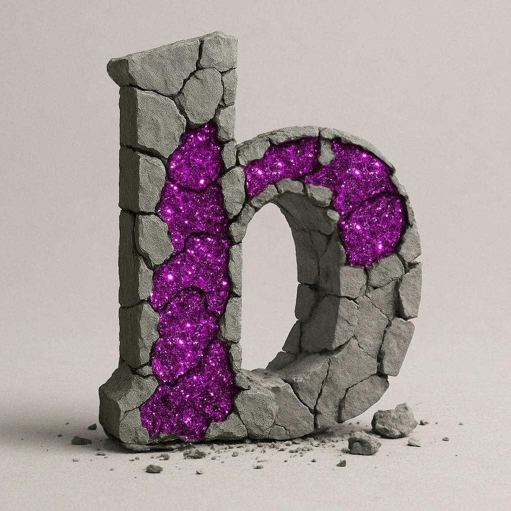 Lower case letter b, decayed and broken with the parts that make a lower case r, shiny pink and glittery.
