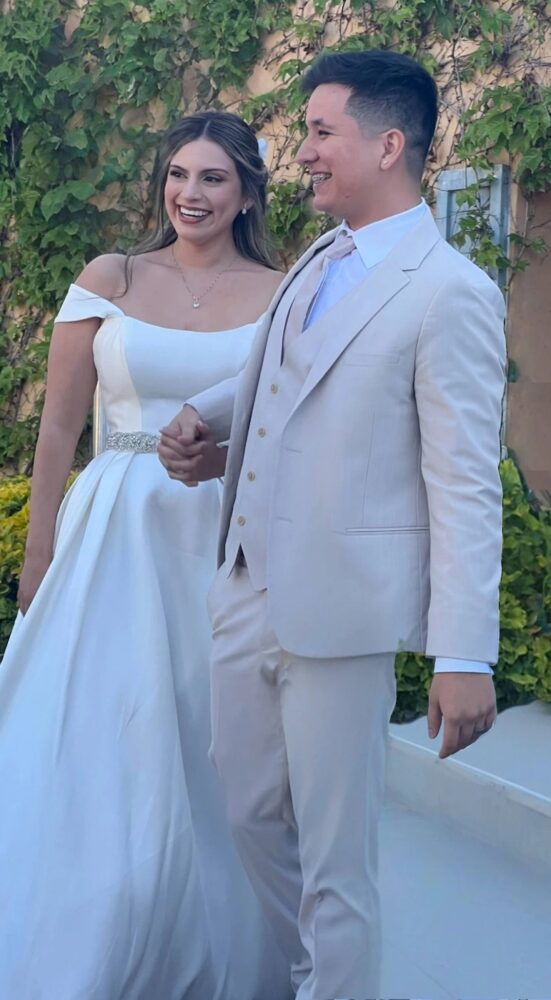 There was quite a bit of clutter to be cleared away before this photo would be worthy of using for a portrait. I got rid of the woman, table and chairs, as well as the electric heater over the bride’s shoulder